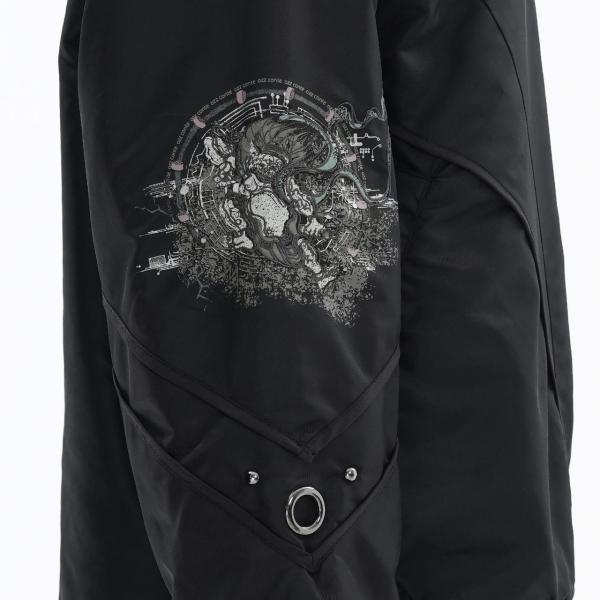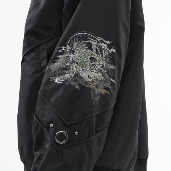 大胆な構図で描かれた風神雷神の図像を、全面にプリントしたリバーシブルMA-1。