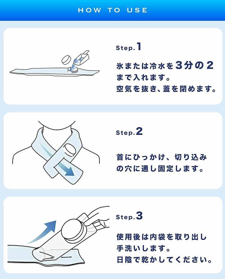 氷を入れるだけで、ひんやり感が瞬時に広がり、太い血管が通る首元をしっかり冷却。