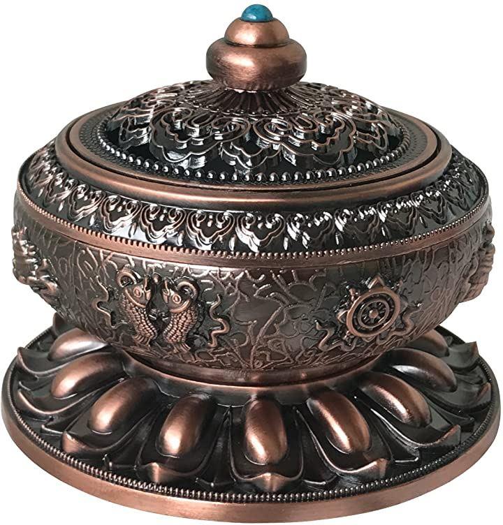 ・合金で作られ、縁起物の絵柄が入った香炉。