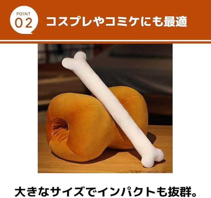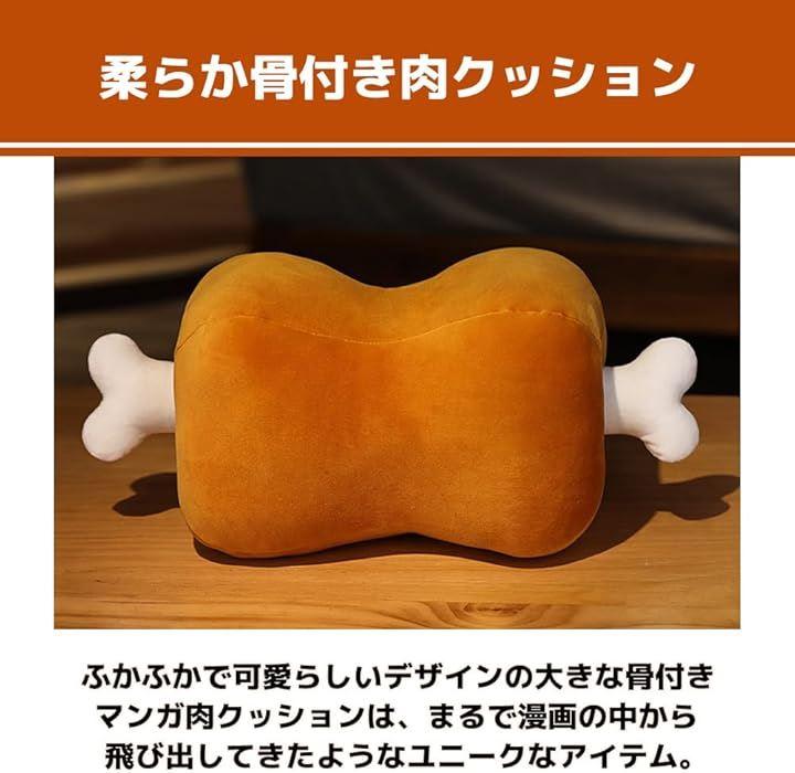 「もちもちした柔らかさがクセになる」ふかふかで可愛らしいデザインの大きな骨付きマンガ肉クッションは、まるで漫画の中から飛び出してきたようなユニークなアイテム。
