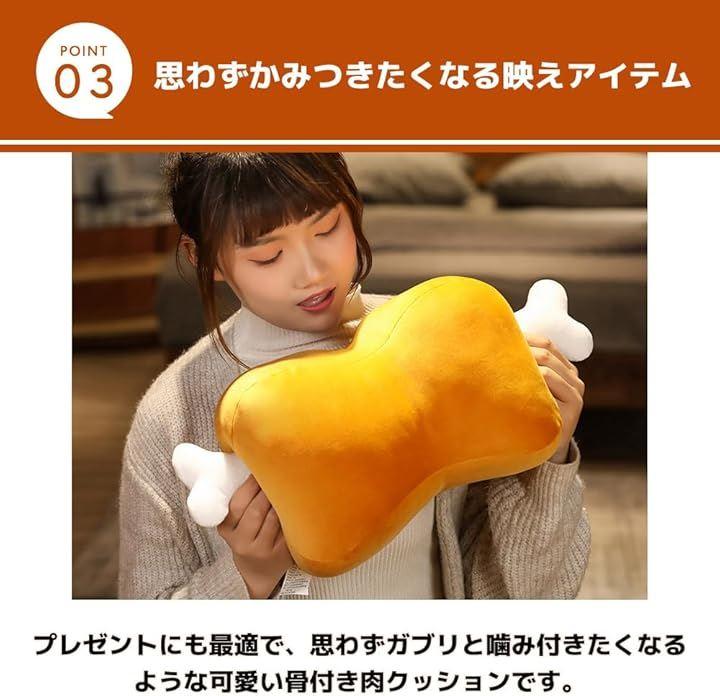 プレゼントにも最適で、思わずガブリと噛み付きたくなるような可愛い骨付き肉クッションです。