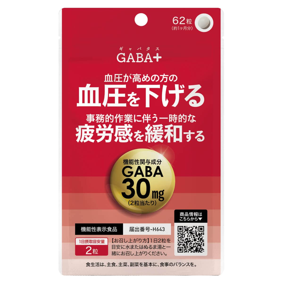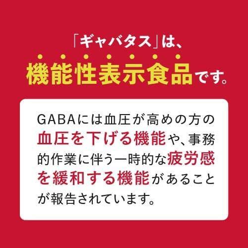 ■サイズ:??16.5x10x1cm;20g 血圧が高めの方に(※)。高めの血圧*を下げ、事務的作業に伴う一時的な疲労感を緩和する機能性表示食品です。< 機能性表示 > 本品にはGABAが含まれています。GABAには血圧が高めの方の血圧を下げる機能や、事務的作業に伴う一時的な疲労感を緩和する機能があることが報告されています。 あなたの血圧はいくつですか?血圧が130台の方は「血圧高め(※)」です。血圧が高い状態が長く続くと、血管はいつも強い圧力で張りつめた状態に。そして徐々に血管の壁が厚く、硬くなっていき、健康リスクを抱えることに…。まだ大丈夫と思っていても、血圧が130台の方は“高血圧予備軍”!塩分の摂りすぎ、飲酒、喫煙、運動不足、ストレスなどの乱れた生活習慣は、血圧が高くなる原因となります。まずは生活習慣を見直して出来ることから、早めの対策を心がけましょう。 < 機能性関与成分:GABA > ギャバタスは、1日の目安量2粒あたり30mgのGABAを配合。GABAはγ-アミノ酪酸とも呼ばれ、自然界に幅広く存在するアミノ酸の一種です。私たち人間の体内や、動物、植物、食べ物などにも存在しています。ギャバタスに配合されているGABAは、麦焼酎の醸造工程で得られる栄養豊富な発酵液を、さらに乳酸菌で発酵させた高純度のGABA「大麦乳酸発酵液GABA」を使用しています。 【 保存料・着色料・香料不使用 】【 ドクターズサプリの専門家】【 GMP認定、岐阜HACCP認定工場での国内製造 】(※)正常高値血圧(収縮期血圧130~139mmHg又は拡張期血圧85~89mmHg)の健常な成人 [お召し上がり方] お好きなタイミングで、1日2粒を目安に水またはぬるま湯と一緒にお召し上がりください。健康を維持するためには『続ける』ことが重要です。食生活は、主食、主菜、副菜を基本に、食事のバランスを。※降圧薬を服用している方は本品の摂取をお控えいただくか、医師または薬剤師にご相談ください。[栄養成分表示]--2粒(460mg)あたりエネルギー1.78kcal、たんぱく質0.03g、脂質0.009g、炭水化物0.4g、食塩相当量0.001g ■重要なお知らせ