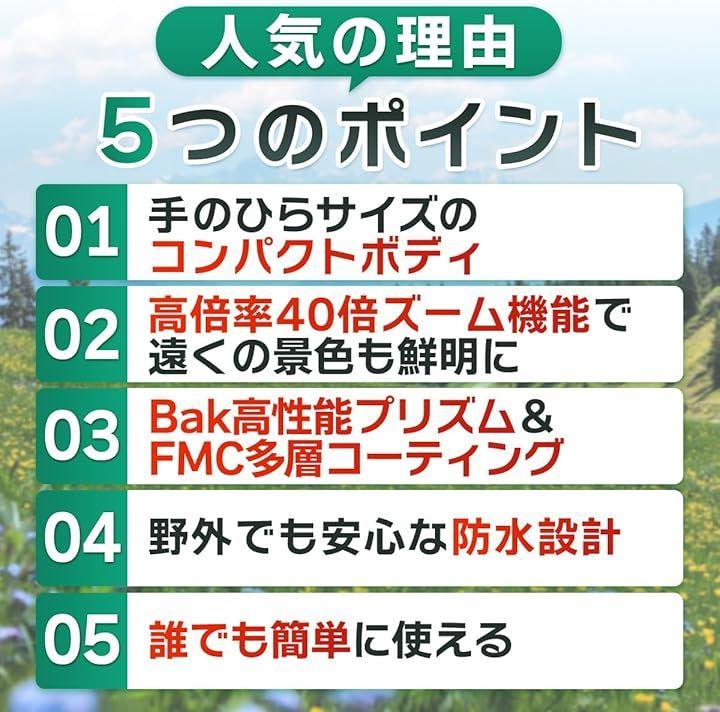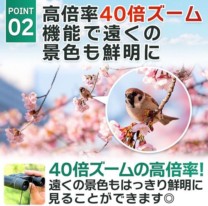 40倍ズーム機能搭載で、遠くの景色も鮮明に観察可能。