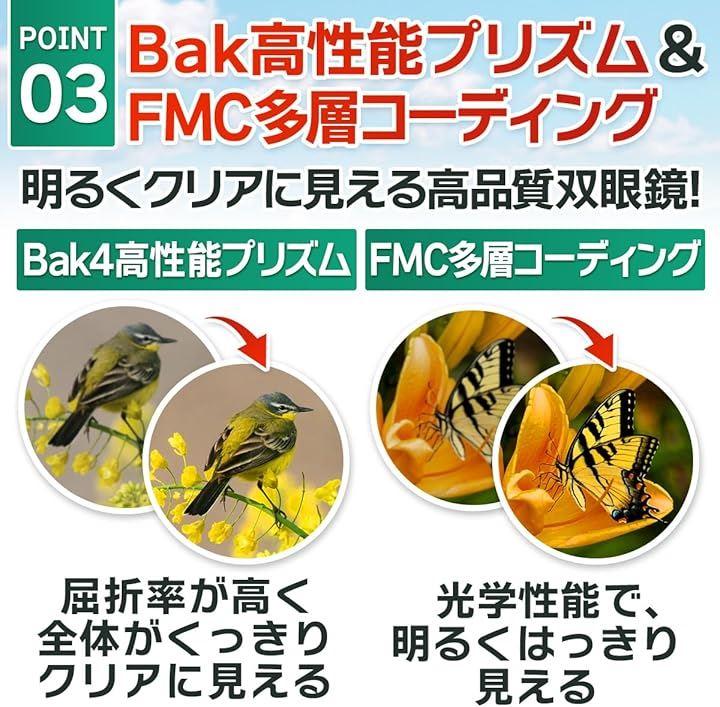 Bak4高性能プリズムとFMC多層コーティングにより、明るくクリアな視界に。