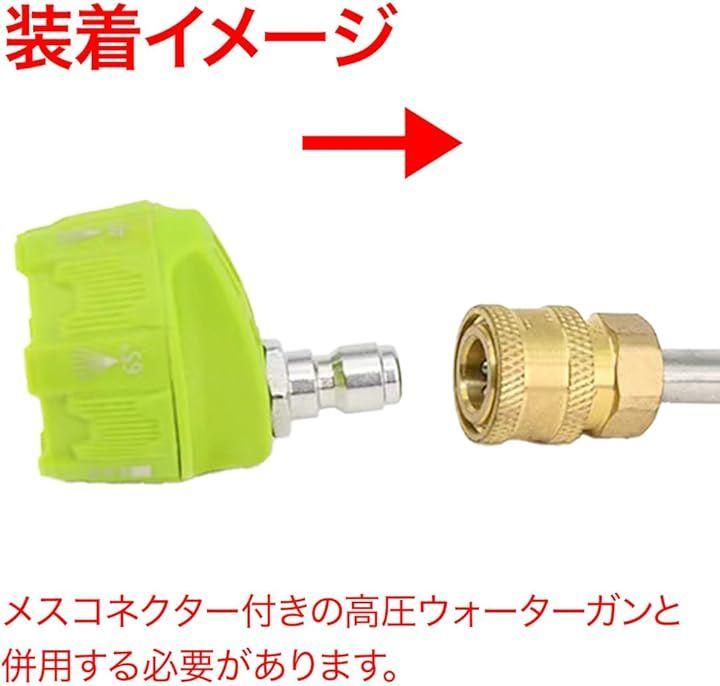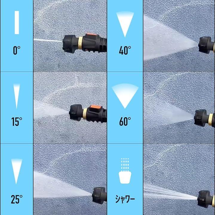 「1つで6役」0°、15°、25°、40°、65°シャワーが機能が1つに集約された高圧洗浄ショートガンに対応したノズルです。
