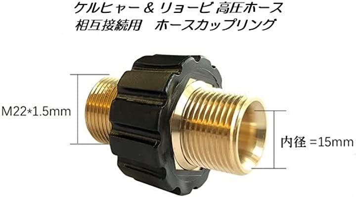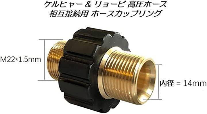 **[HOTEISON]高圧洗浄機高圧ホース接続カップリングケルヒャー&リョービなど、異種ホースの相互接続に M22おねじ(内径14mm)xM22おねじ(内径15mm)**