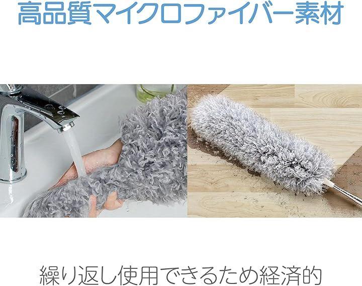 「高品質マイクロファイバー素材」 ふわふわのマイクロファイバーヘッドは静電気を利用してほこりや汚れを効果的に吸着します。