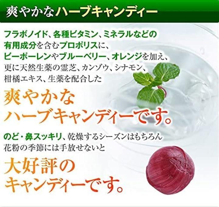 [ハーブキャンディー成分]プロポリスエキス・ビー花粉(ミツバチ花粉)・柑橘エキス(チンピ)・シナモン(桂皮)・甘草・霊芝・生姜・還元パラチノース・香料・甘味料