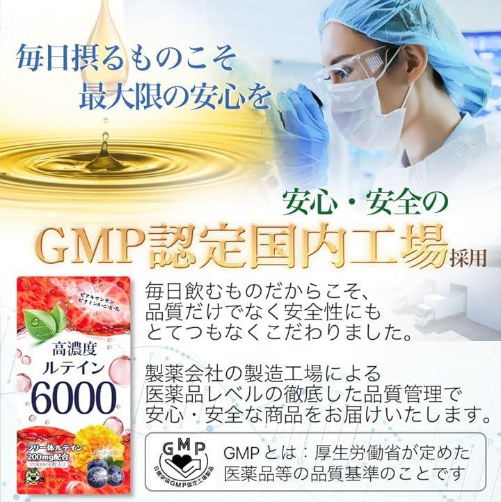 「マリーゴールドから抽出したフリー体ルテインを200mg配合」高濃度ルテイン6000はフリー体ルテイン200mgを1日あたり3粒に配合したサプリメントです。