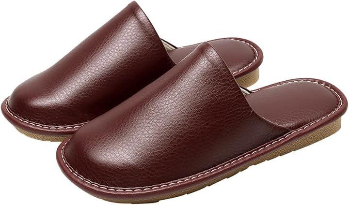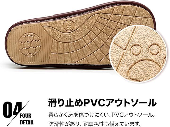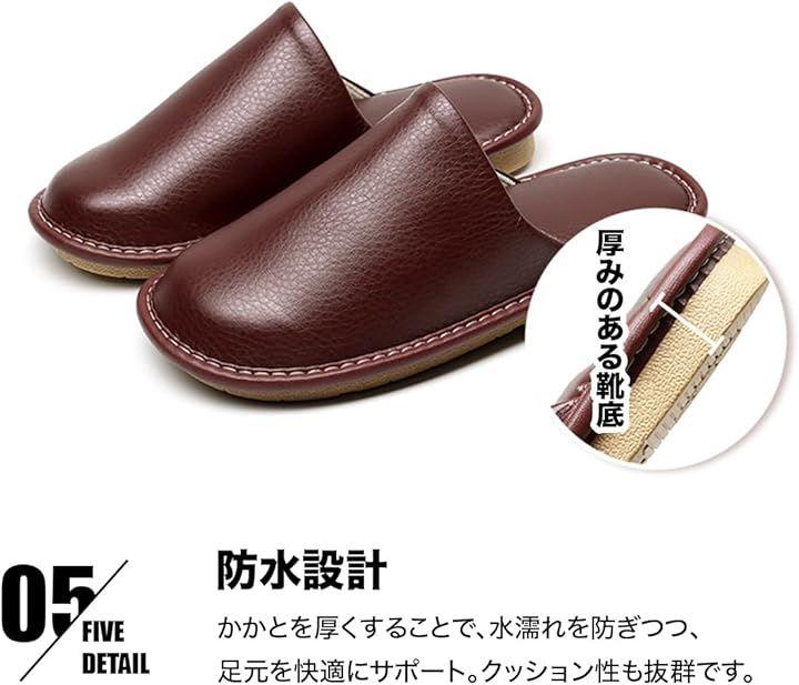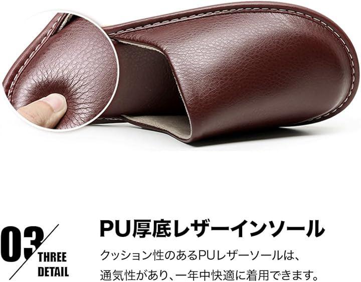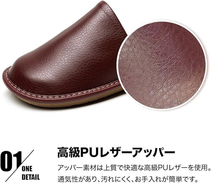 「高級PUレザースリッパ」上質なPUレザーで仕立て、汚れにくく、お手入れ簡単。