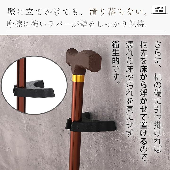 高耐久・丈夫なステッキホルダー杖をどこにでも簡単設置軽量 簡単取り付け 安定性 壁掛け テーブル対応