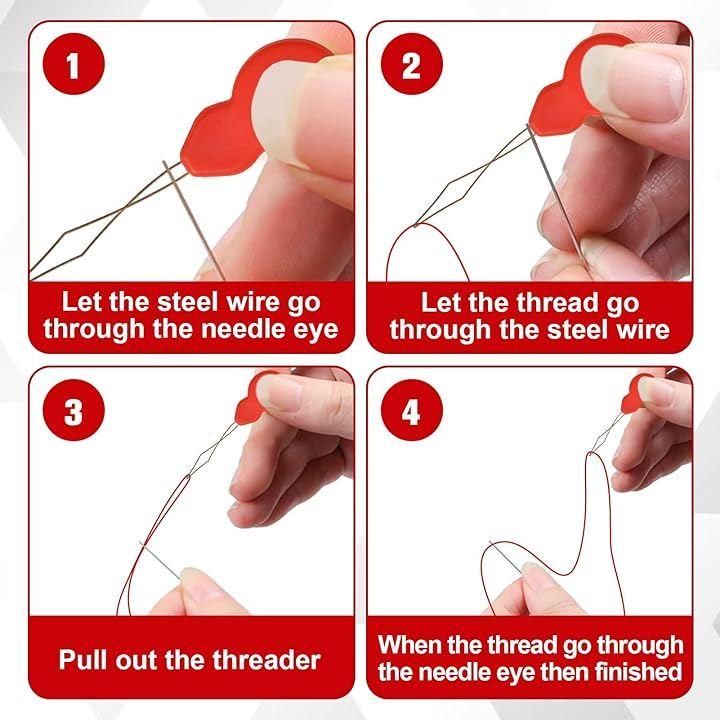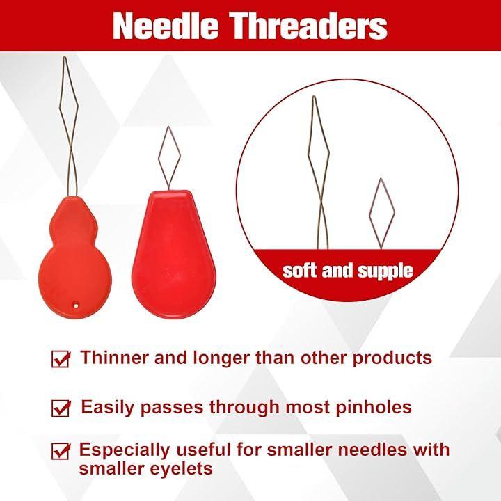 赤い針通しは、より細く長く柔軟な針金で、特に小さな針穴にも容易に通ります。