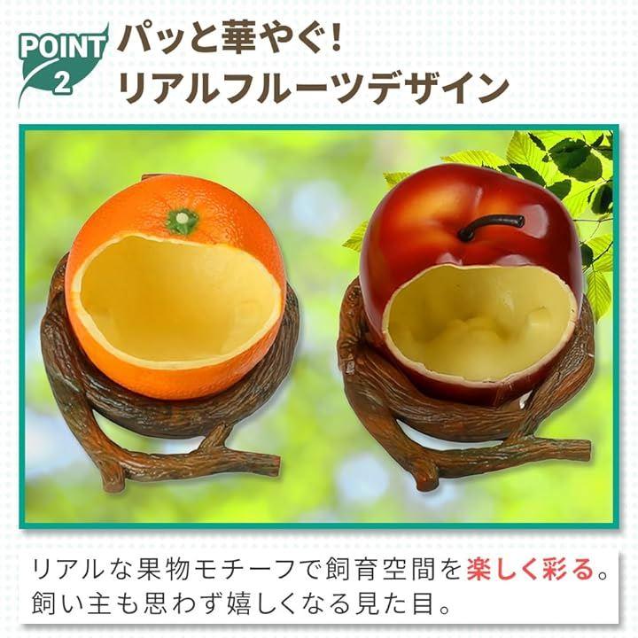 リアルな果物モチーフで飼育空間を楽しく彩る。