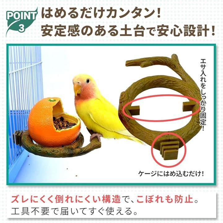 本物そっくりの果物デザインで、鳥が自然と近づく。