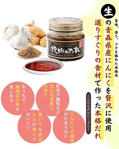 じっくり煮込み濃度をたかめた甘辛醤油ベースに、青森県産にんにく・高知県産生姜・香りのよい純正ごま油をふんだんにブレンドした濃口たれです。青森県産にんにくと高知県産生姜は直前に皮をむき、すりおろしを行ってからブレンドし、香りのよい純正ごま油を合わせ非加熱で仕上げてあります。原材料の良さを生かし、味、香り、コクを極めた食通向けの本格派。食材の風味を贅沢に閉じ込めたたれは「白米」、「野菜」、「肉」等との相性が良く、食欲をかきたてる逸品です。