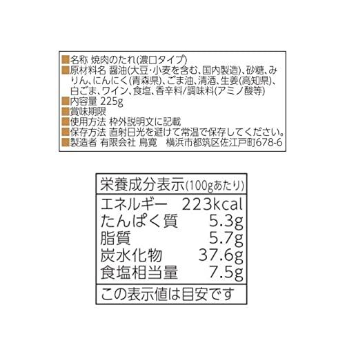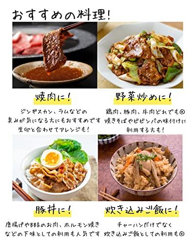 おすすめの使用料理例・「焼肉」のつけだれ・肉のもみだれ・餃子のつけだれとして・チャーハンの味付けに・茹でたパスタに絡めて炒める・牛肉と玉ねぎ、キャベツ、もやしの炒めものの仕上げの味付けに・豚の角煮の味付け・鳥肉の唐揚げの肉の下味つけに・丼物の具材の仕上げの味付けに・焼うどんの味付けに・煮物の隠し味に・肉じゃがの隠し味に・ビネガーを加えてサラダドレッシング風に