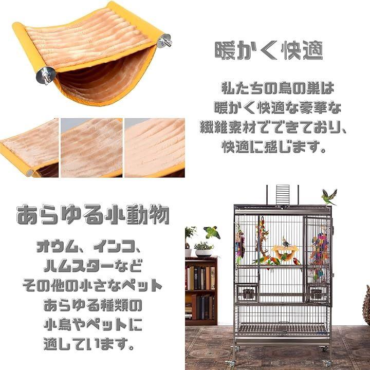 「サイズの選択肢」この商品はS,Lサイズで提供されており、小型のインコやハムスター、デグーなどのサイズに合わせて最適に購入できます。
