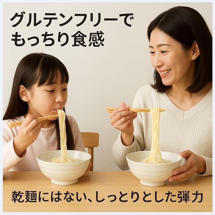 乾麺にはない、しっとり・もっちりとした弾力が特長で、小麦粉を一切使用していないため、小麦アレルギーをお持ちの方にも安心してお召し上がりいただけます。