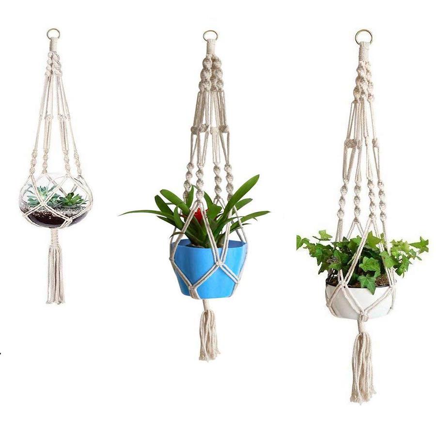 3営業日以内に発送≪新品未開封品≫:麻縄 植木鉢 屋外屋内植物ハンガーマクラメ プラントハンガー 観葉植物 吊り下げ ロープ ハンギングプランター 3種セット