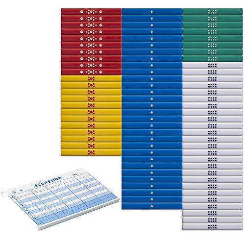 セット内容 : 10000点棒(赤)×10本 / 5000点棒(黄色)×12本 / 1000点棒(青)×30本+α / 500点棒(緑)×6本+α / 100点棒(白)×25本 (合計91本) 点棒サイズ : 約 4 × 7 × 65 mm / 材質 : プラスチック 重量 : 約 2.5 g / 本 8段100枚綴りスコア記録帳【得点帳】1冊付 ※「スリムプラススコア」「スリムスコア28」などの点数表示機能付全自動麻雀卓では点数は表示されません。