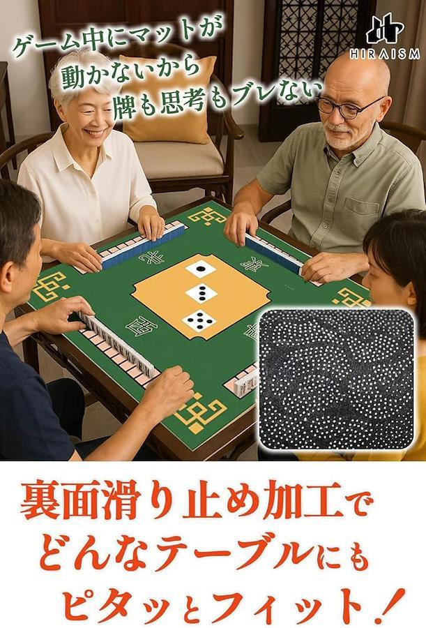 「ほどよい厚みで快適、落ち着いて遊べる静音設計」牌を置くたびに響く音も、この麻雀マットなら優しく吸収。