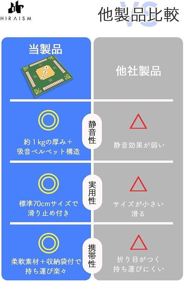 「商品内容」麻雀用高品質防音テーブルマット カラー:グリーン サイズ:縦/約70cm 横/約70cm 重量:約1kg 素材:ベルベット,ポリエステル