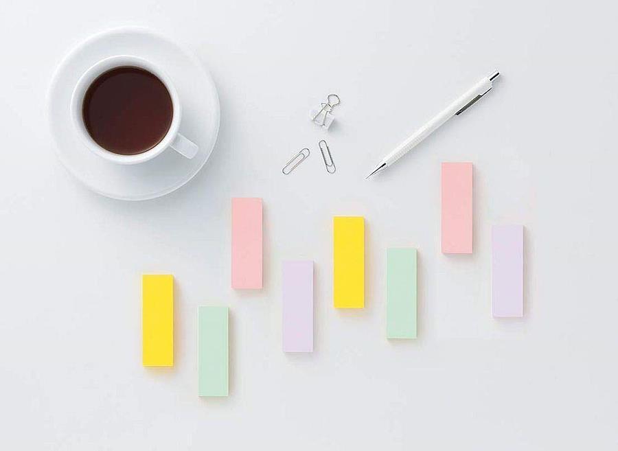 明るく柔らかなパステルカラーの取り合わせが気分を和らげ、優しい気持ちにしてくれます。事務作業のメモ取りや仕事仲間へのメッセージに。