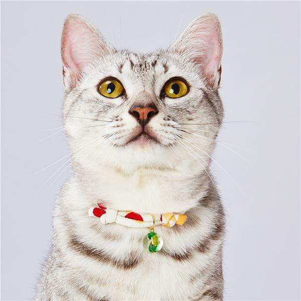 トンボ玉付きの高級感ある和柄猫首輪。力が加わると外れる安心仕様のマグネット式で取付け簡単。