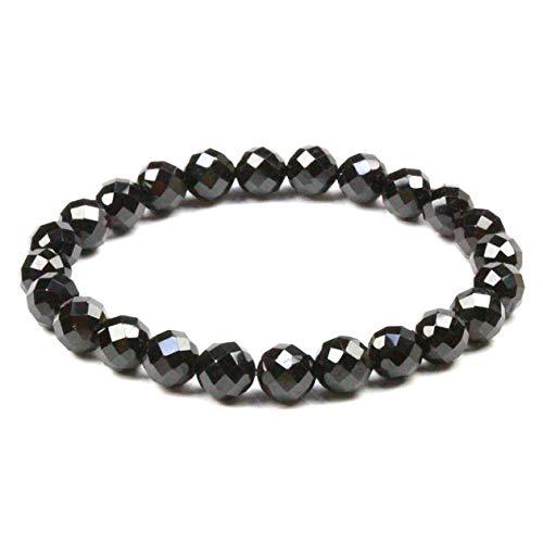 ( ハッピーボム ) ブラックスピネル 8mm 64面 ミラーボールカット 天然石 ブレスレット 18cm