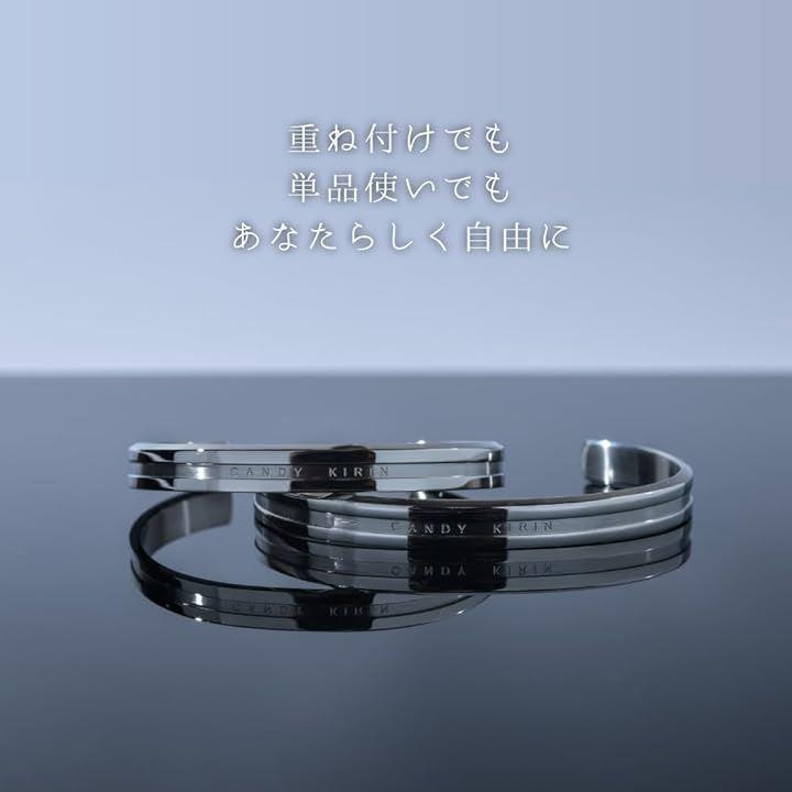 「サイズ」 レディース:Sサイズ:円周155mm メンス:Mサイズ:円周166mm*このバングルは柔らかめな高品質なサージカルステンレス素材なので少しの力で広げたり、縮めたり出来る為、様々な方に合わせて使用できます。