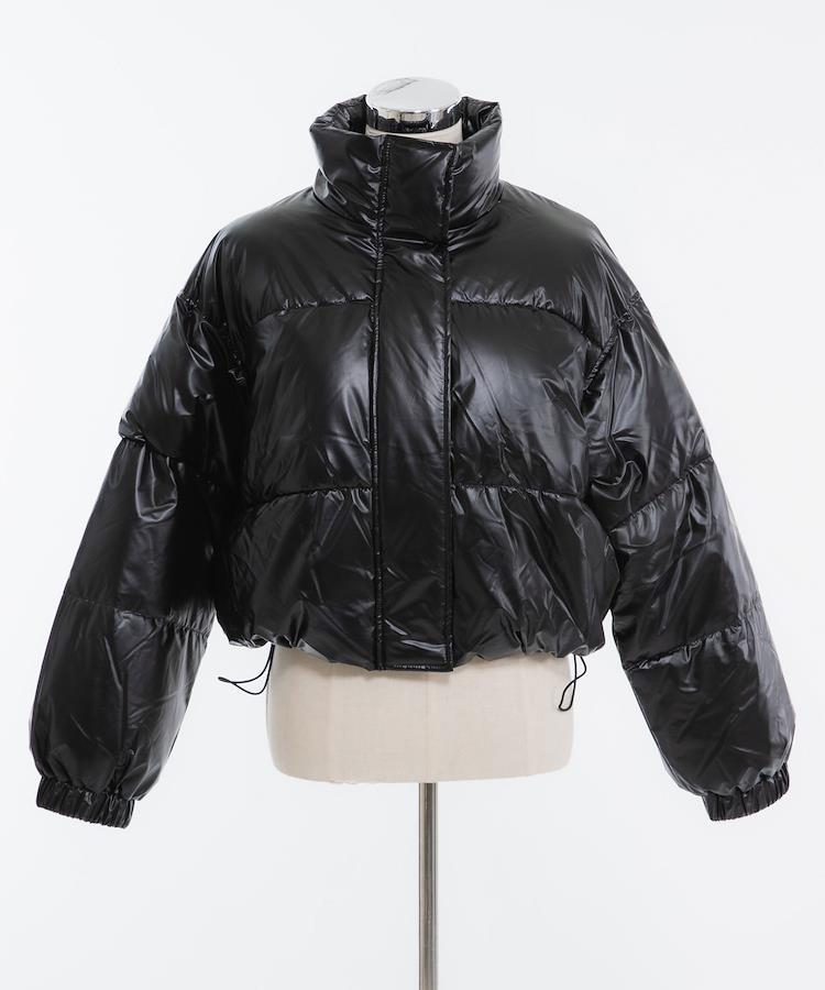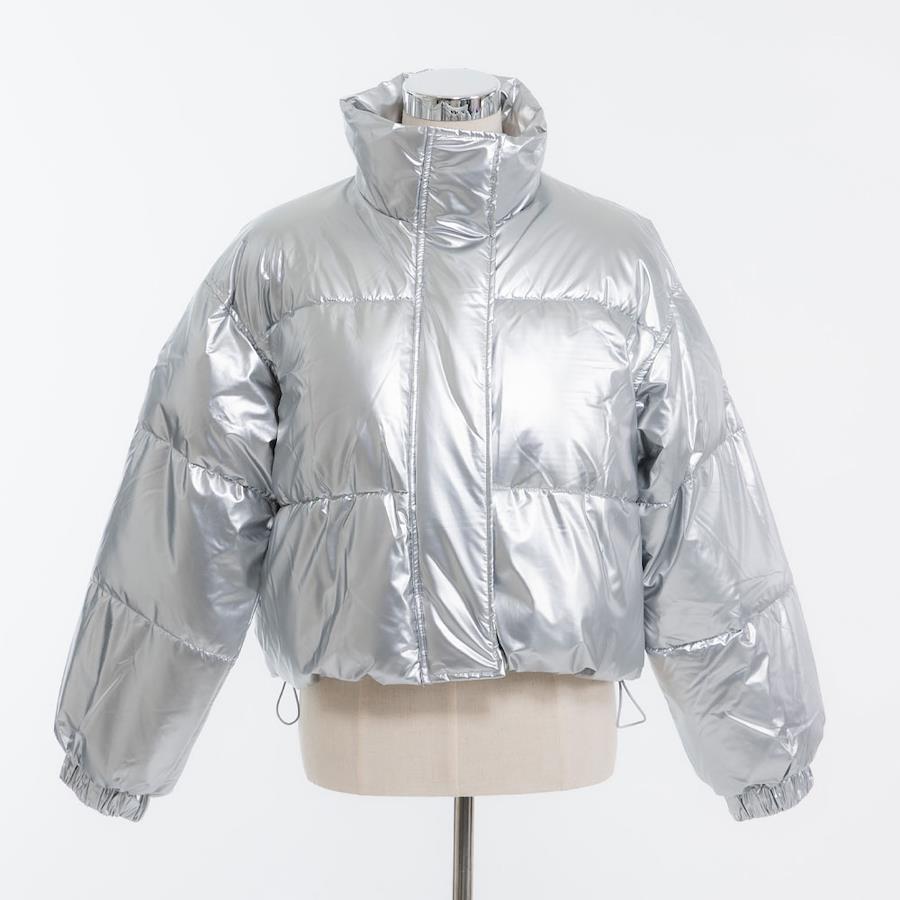 ◆Designキラッとした光沢のある素材が特徴的で、インパクトのあるデザインが目を引きます。両脇裾にある絞りでキュッとコンパクト丈に◎襟元はハイネックデザインで風を通しにくいです。ストリート系やカジュアルスタイルにぴったり。内側には中綿がしっかりと詰められていて、防寒性に優れています。