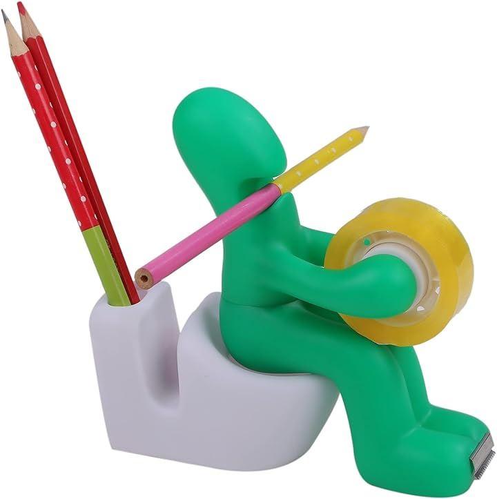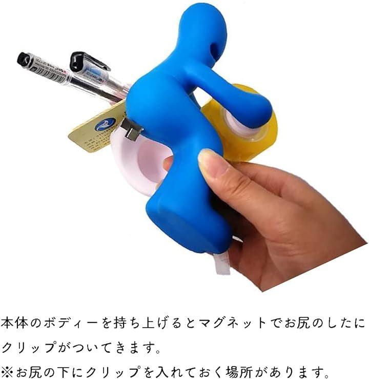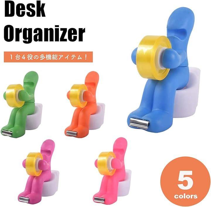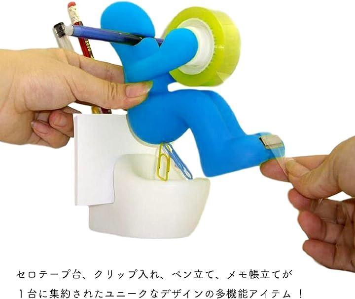 1台4役の多機能アイテム。セロハンテープ台、クリップ入れ、ペンたて、メモ帳スタンドが1台に集約されたユニークなデザインの事務用品です。