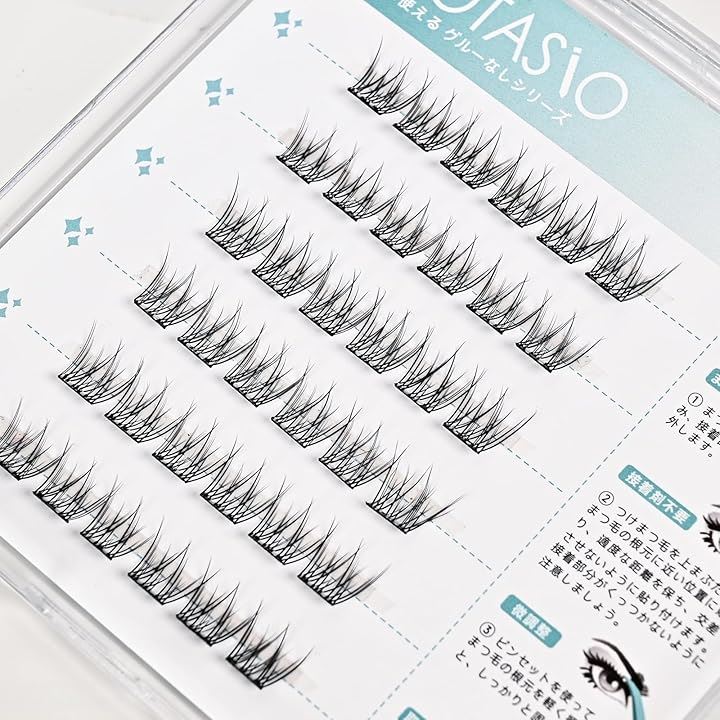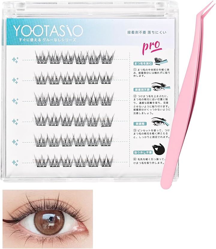 YOOTASIO すぐに使える グルーなしシリーズ 接着剤不要 落ちにくい --- 使用方法: (1) まつ毛の中央部分を軽く挟み、接着部分には触れずに取り外します。