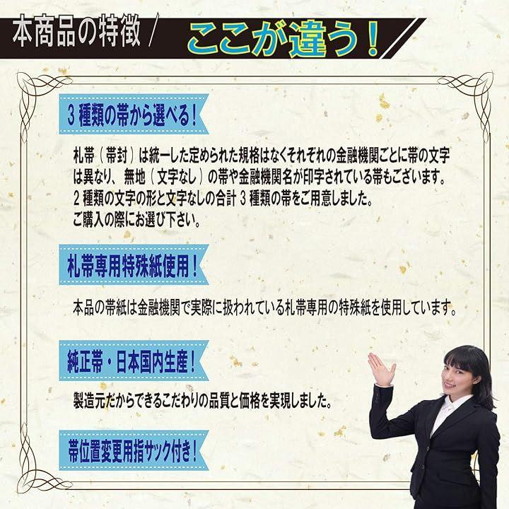 *札帯専用特殊紙使用.本品の帯紙は金融機関で実際に扱われている札帯専用の特殊紙を使用しています。