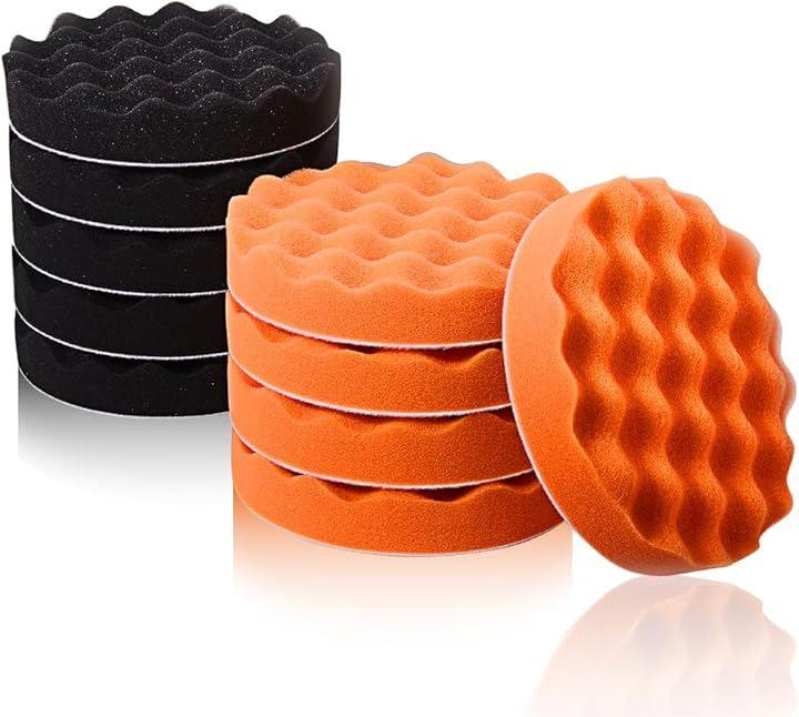 愛車に傷を与えない電動ポリッシャー用のスポンジバフたくさん使える2色、10個セット。洗車やワックスがけ、コンパウンド、研磨、などに使えます。