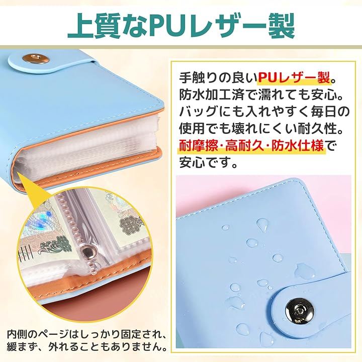 「 製品仕様/夢への第一歩 」 *セット内容:PUレザー製バインダー, 1-100番ポケット付きリフィル50枚(両面で100ポケット)。