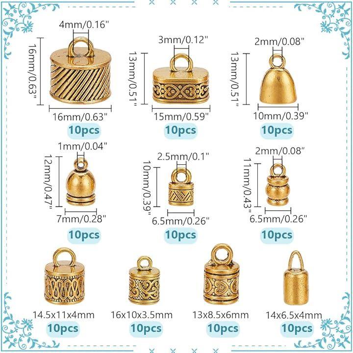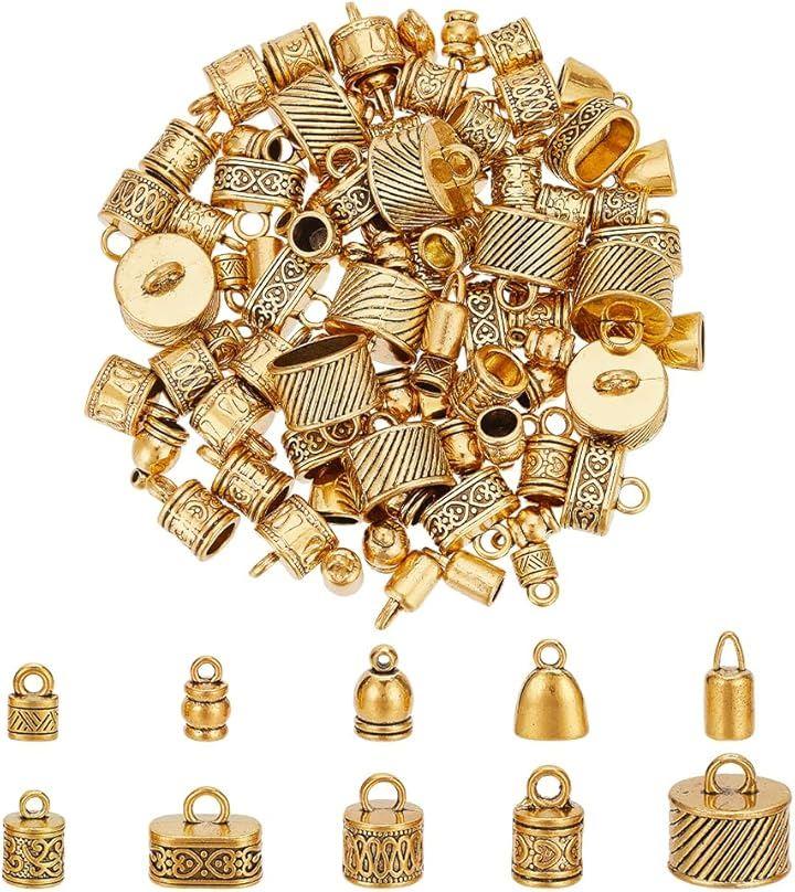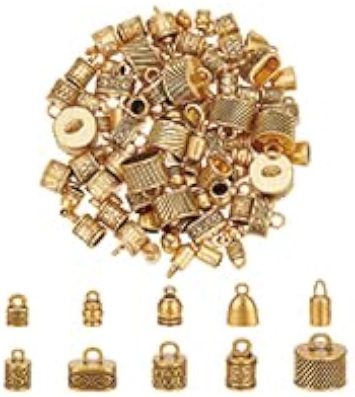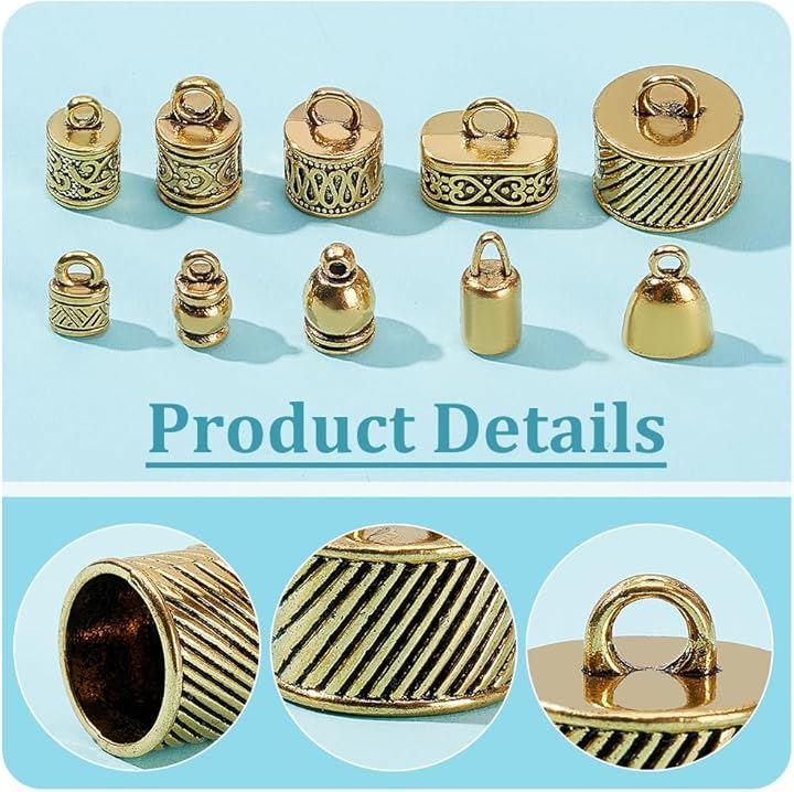 PH PandaHall 100個 10スタイル 合金ロープエンド 合金素材は耐久性があり、丈夫で壊れにくいです。