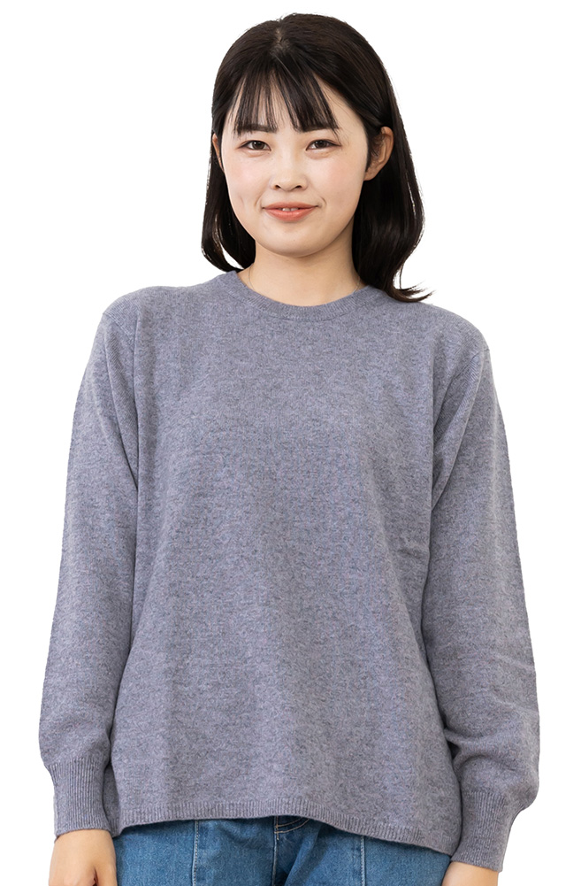 カシミヤ100%クルーネックセーター 38-グレー Mサイズ