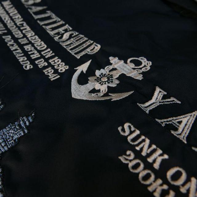 商品名:【ポイント10倍】 フライトジャケット(戦艦大和・刺繍入り)【戦艦大和グッズ】防寒着 ミリタリー アウトドア カジュアル ジャケット メンズ海上自衛隊 簡易ジャンパーをベースに背中に戦艦大和を刺繍。サイズは大き目です。取り外し可能な【襟ボア】付きです。左胸&左腕にベルクロ付きなので、お好きなパッチやネームタグを取り付けることができます。左胸:5x10cm・左腕:4x6cm※商品にワッペンは含まれません。カラー:ブラックサイズ:S/M/L/LL/3L/4L<サイズ表(仕上がり寸法)・cm>4L:胸囲145・肩幅58・着丈75・袖丈713L:胸囲140・肩幅56・着丈73・袖丈67LL:胸囲135・肩幅54・着丈71・袖丈65L:胸囲130・肩幅52・着丈69・袖丈63M:胸囲125・肩幅50・着丈67・袖丈61S:胸囲120・肩幅48・着丈65・袖丈59SS:胸囲115・肩幅46・着丈63・袖丈57<素材>表:ナイロン100%中綿:ポリエステル100%