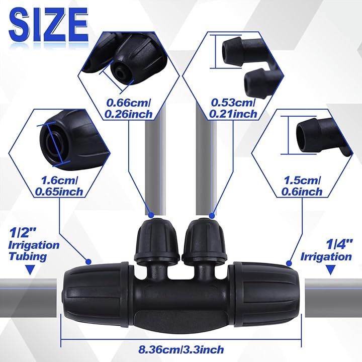 これらの多機能継手は、両端を1/2ドリップチューブに接続し、1/4分配チューブにシームレスに移行します。
