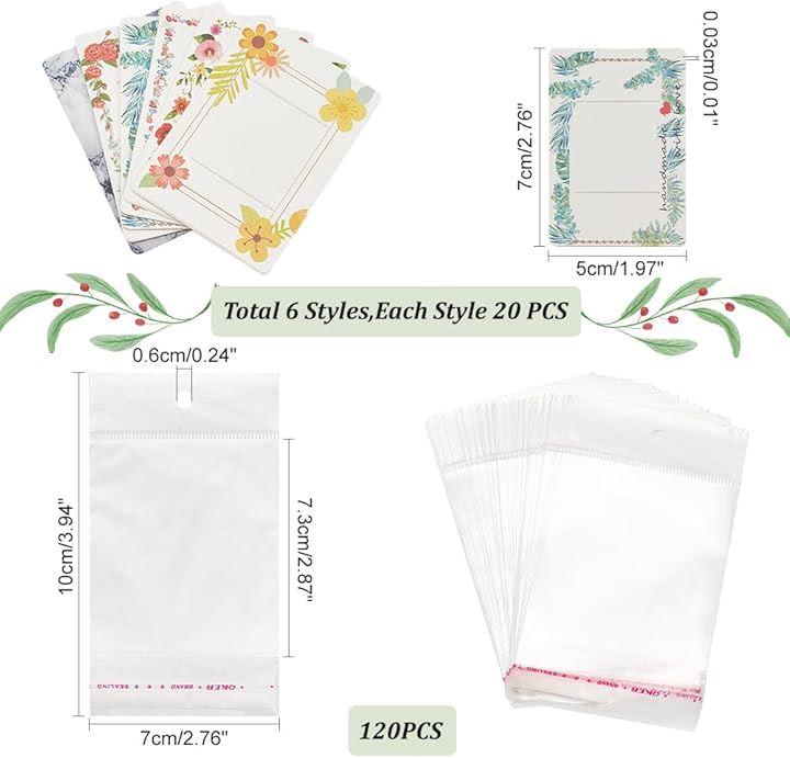 サイズ:台紙:幅約2.76インチ(7cm)、長さ1.97インチ(5cm)、厚さ0.01インチ(0.03cm)、20枚/色、6色、120枚。