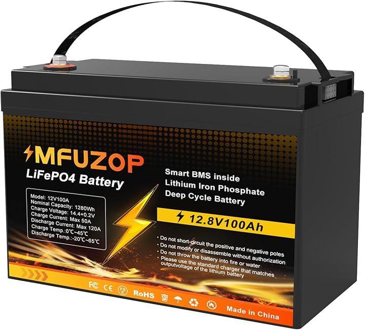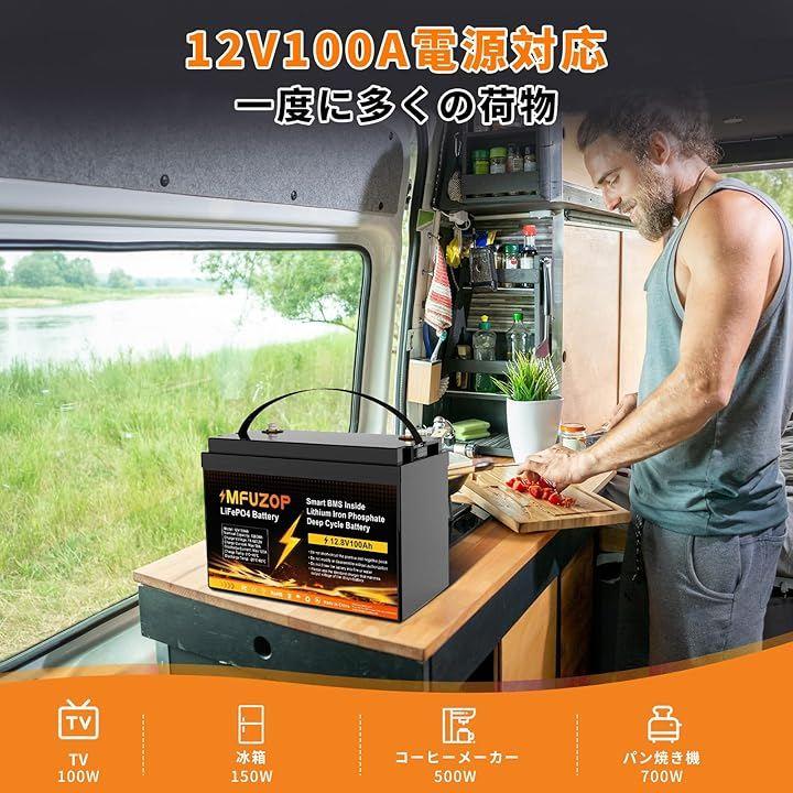 「幅広い用途」MFUZOP 12V100Ah LiFePO4 ディープサイクルバッテリーは、大電流に対する強い耐性、高い充電効率、安定した性能を備えています。