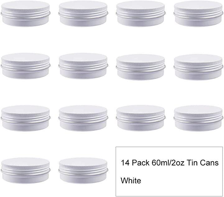 ・パッケージ包装:14個セットアルミ缶;サイズ:容量60ml、直径約6.8cm、高さ約2.5cm;色:ホワイト
