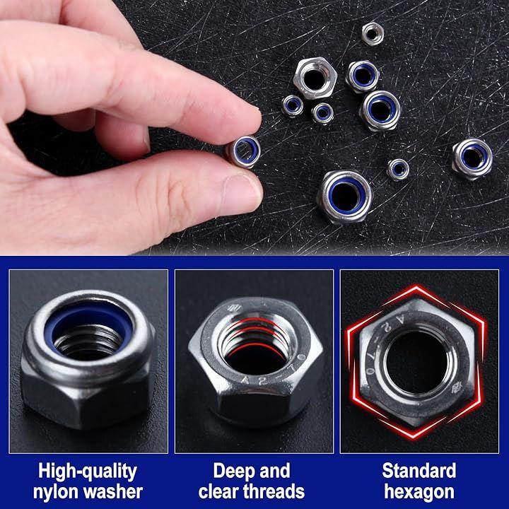 この包括的なセットには、M3、M4、M5、M6、およびM8標準スレッドナイロクナットが含まれており、さまざまな用途でネジやボルトを固定するのに最適です。