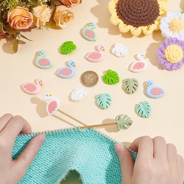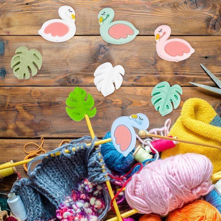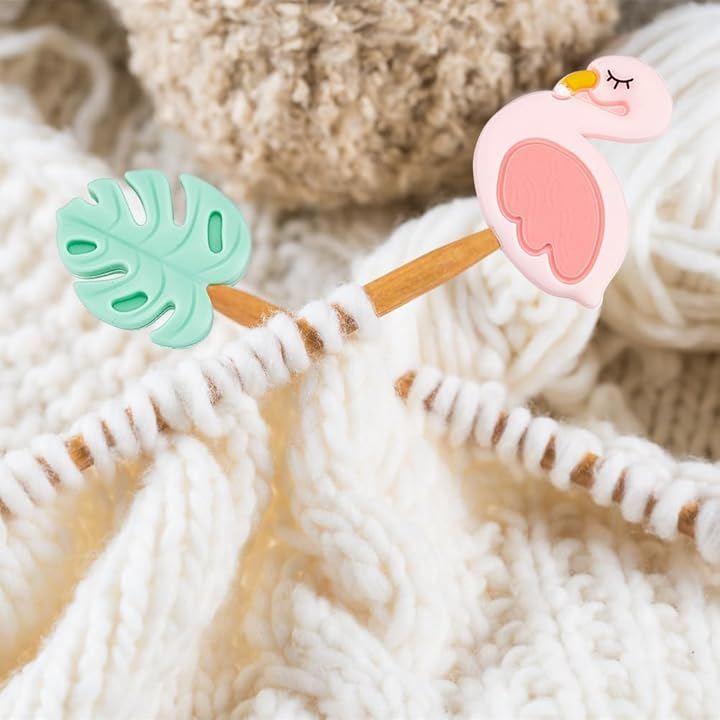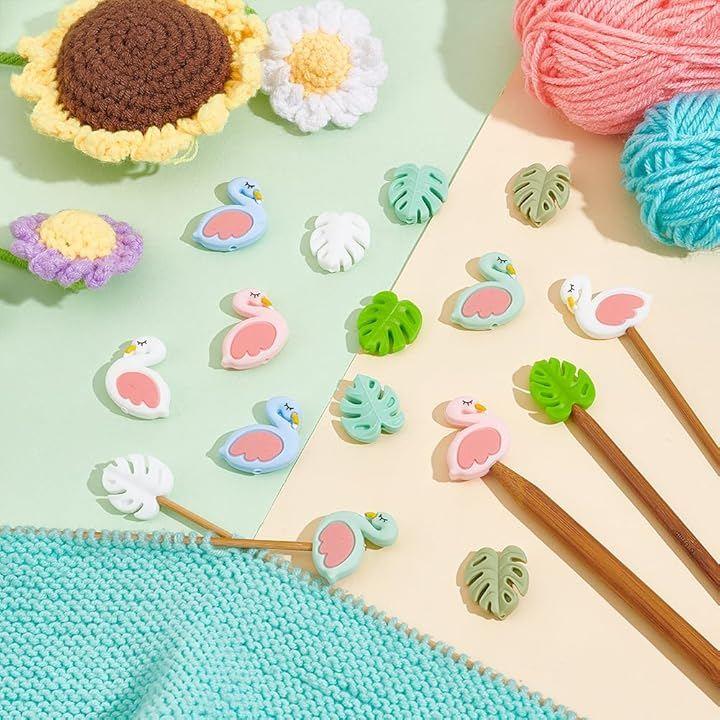 BENECREAT、シリコン製でフラミンゴとモンステラリーフスタイルの編み針ストッパーです。