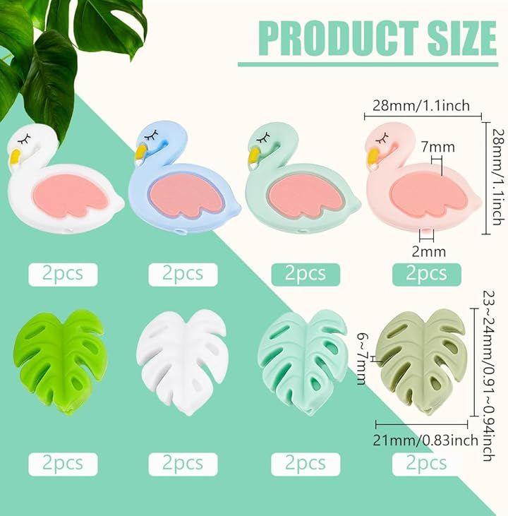フラミンゴの編み針ストッパー:28x28x7mm、穴: 2mm、2個/色、4色、8個入り;モンステラリーフの編み針ストッパー:23~24x21x6~7mm、穴: 2mm、2個/色、4色、8個入りです。