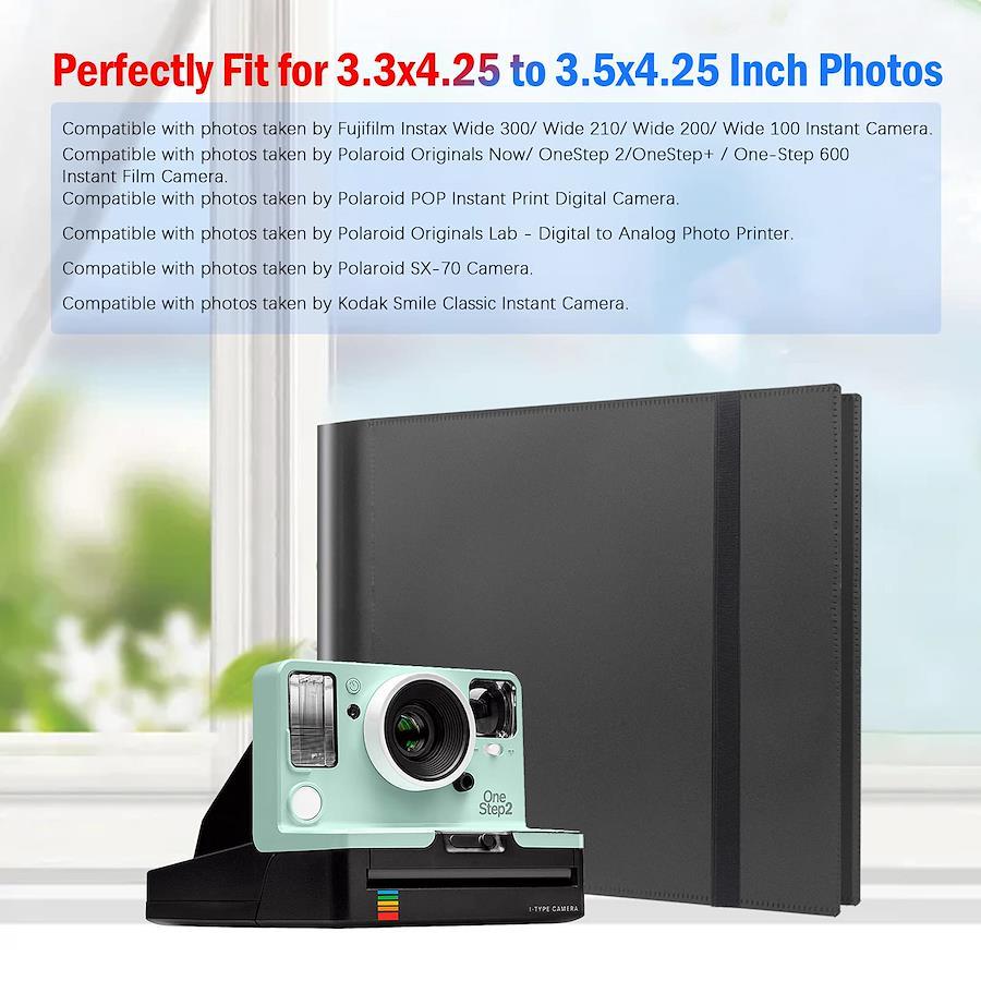 160ポケットフォトアルバム 富士フィルム Instax Wide 300カメラ用 ポラロイド600フォトアルバム Polaroid Now OneStep2 OneStep+ 600インスタントフィルムカメラ ポラロイド POP Lab インスタントプリントカメラ (ブラック)
