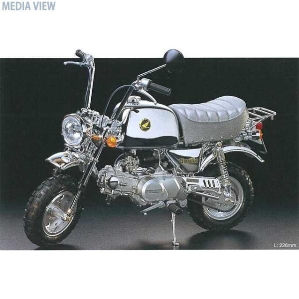 タミヤ 1/6 オートバイシリーズ No.31 ホンダ ゴリラ スプリングコレクション プラモデル 16031 タミヤ 1/6スケール 「オートバイシリーズ No.31 ホンダ ゴリラ スプリングコレクション」 のプラモデル。レジャーバイクというジャンルを切り開いたHonda・モンキーの兄弟車として1978年8月に登場したのがゴリラです。自動車に乗せて目的地まで移動するというモンキーの考え方に対し、9リッターの大型タンクや長距離ドライブに適したシートなどを採用したゴリラは、目的地まで自走することを前提に開発されたのです。1992年にいったん生産がうち切られますが、その後も中古車市場で高い人気を集めたために、1998年に生産を再開。99年1月には全身にクロームメッキが施されたスペシャルモデルが販売されました。