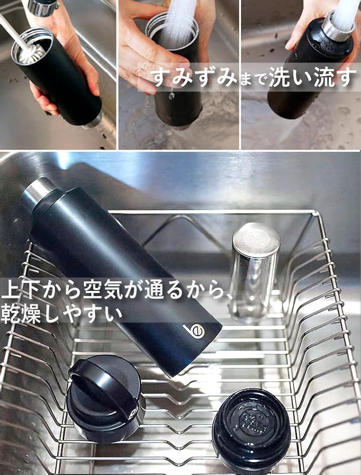 「サイズ(約)」280ml:20.7cmx6cm 498ml:24cmx6.9cm 「材質」本体:ステンレス鋼 上下キャップ:PP パッキン:シリコンゴム 「お手入れ方法」食洗機*蓋は手洗いが長持ちします。