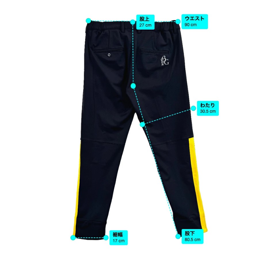 【実寸】:ウエスト90cm、股上27cm、股下80.5cm、わたり30.5cm、裾幅17cm